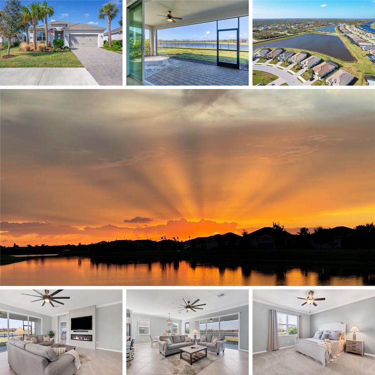 NO FLOOD INSURANCE REQUIRED! And NO CDD, Just beaches, beaches, beaches! Some of Florida's most pristine beaches are less than 30 minutes away! It's more than a place to live--it's a way of life. With perfect weather year-round and limitless sunshine, plenty of activities, scenic biking and hiking trails, boating, and endless beach days, it's a lifestyle that never stops. With its gated entrances, waterfront location, and no back-to-back home sites, this HARBOR WEST community offers a sense of exclusivity and security with privacy and open space. This established neighborhood offers mature landscaping, larger lots, and longer driveways with no new construction hassles. Step inside the immaculately kept home and be greeted by the inviting, light filled open-concept floor plan featuring IMPACT resistant doors and windows and more than $30,000 in upgrades. The additional den space could serve as either an office, a fourth bedroom, or a media room. The home boasts an expansive kitchen island and triple pocket sliding doors that seamlessly blend indoor and outdoor living. Delight in the oversized screened lanai, offering an ideal setting to relish Florida's breathtaking sunsets and tranquil lake views with the fenced back yard creating a private oasis to enjoy the surrounding wildlife. Discover modern elegance with a sleek electric fireplace with wood shiplap surround adding a stylish and cozy touch to the living space. The kitchen is upgraded with a stainless-steel vent hood and spacious single bowl sink. Enjoy the ease of maintenance free lawncare and landscaping, giving you more time to explore Florida's renowned beaches, charming boutiques, fine dining, and premier boating and fishing!