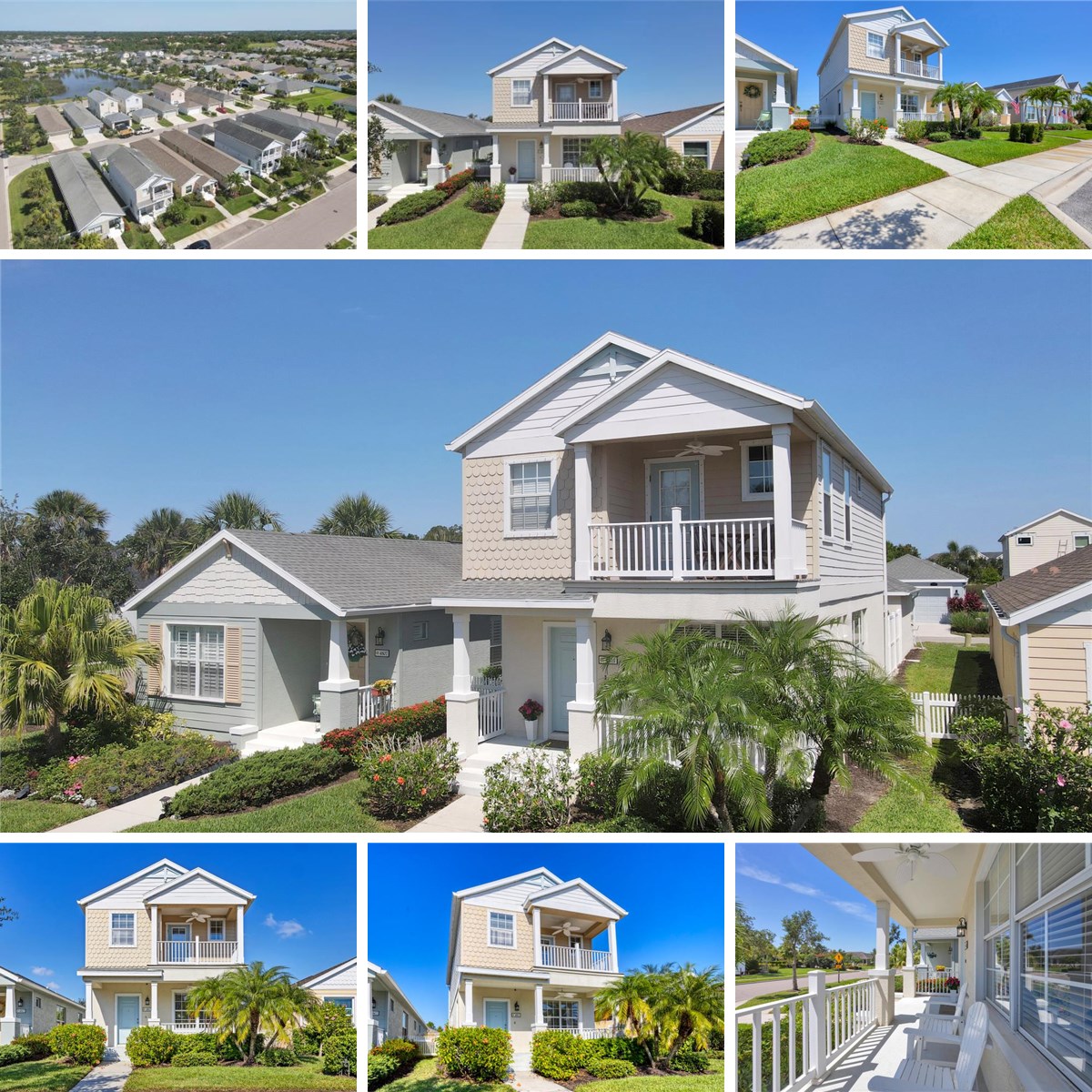LOCATION! LOCATION! LOCATION! NEW Trane HVAC (2024), ductwork cleaned/sealed (2025), ceiling fans (2024), and NEW hot water heater (11/2025). With over $28,000 in improvements, you can MOVE RIGHT IN to this beautiful Key West–style private, courtyard home in Woodbrook, a gated community with low HOA fees and NO CDD. This inviting two-story residence offers a rare and versatile layout featuring 2 private EN-SUITE BEDROOMS—perfect for guests, multi-generational living, or a dedicated work-from-home suite. The first floor features a large, bright open-concept living, dining, and kitchen layout with 18"x18" tile throughout. The kitchen is well-appointed with Cumberland cherry wood cabinetry, solid-surface countertops, NEW STAINLESS-STEEL APPLIANCES, a large center island, breakfast bar, and a spacious walk-in pantry. A convenient half bath and a laundry closet with a NEW washer and dryer complete the main level. Upstairs, both bedrooms are generously sized with full baths. The primary suite includes vaulted ceilings, a walk-in closet, and a private balcony overlooking peaceful green-space views. Carpet installed in 2022. Enjoy Florida living in the private brick-paved courtyard, ideal for outdoor dining, gardening, or relaxing, with direct access to the detached two-car garage and additional storage. Recent upgrades include Trane HVAC (2024), ductwork cleaned and sealed (2025), new ceiling fans (2024), and new hot water heater (2025). Located on a premium lot across from open green space and just steps to resort reveals amenities including pool, spa, cabana, grills, playground, and park. Minutes to UTC, Lakewood Ranch, downtown Sarasota, Nathan Benderson Park, I-75, golf, shopping, dining, St Barbara's, and Gulf beaches. Seller offering up to $5,000 toward buyer closing costs or additional upgrades!