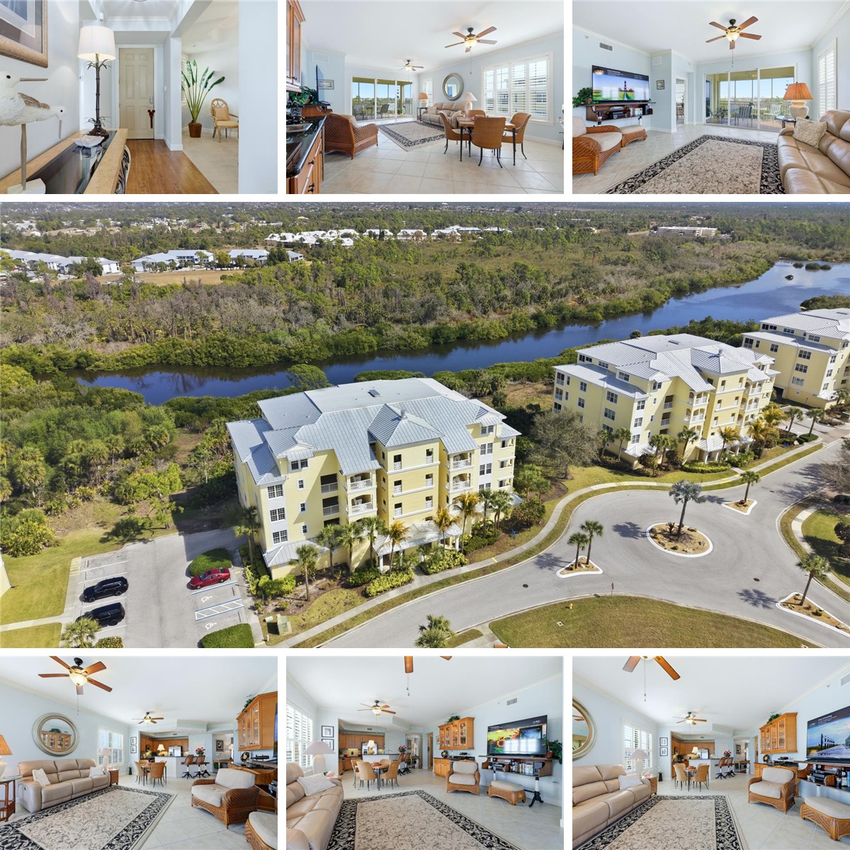 This substantial fourth-floor end unit is designed for relaxed, resort-style Florida living. The bright living area transitions to a northeast-facing lanai, providing panoramic views of your serene nature preserve and private lake, with its vast array of waterfowl on display several months of the year—a relaxing setting for sensational sunrises, morning coffee, evening refreshments, and simply appreciating the natural landscape.